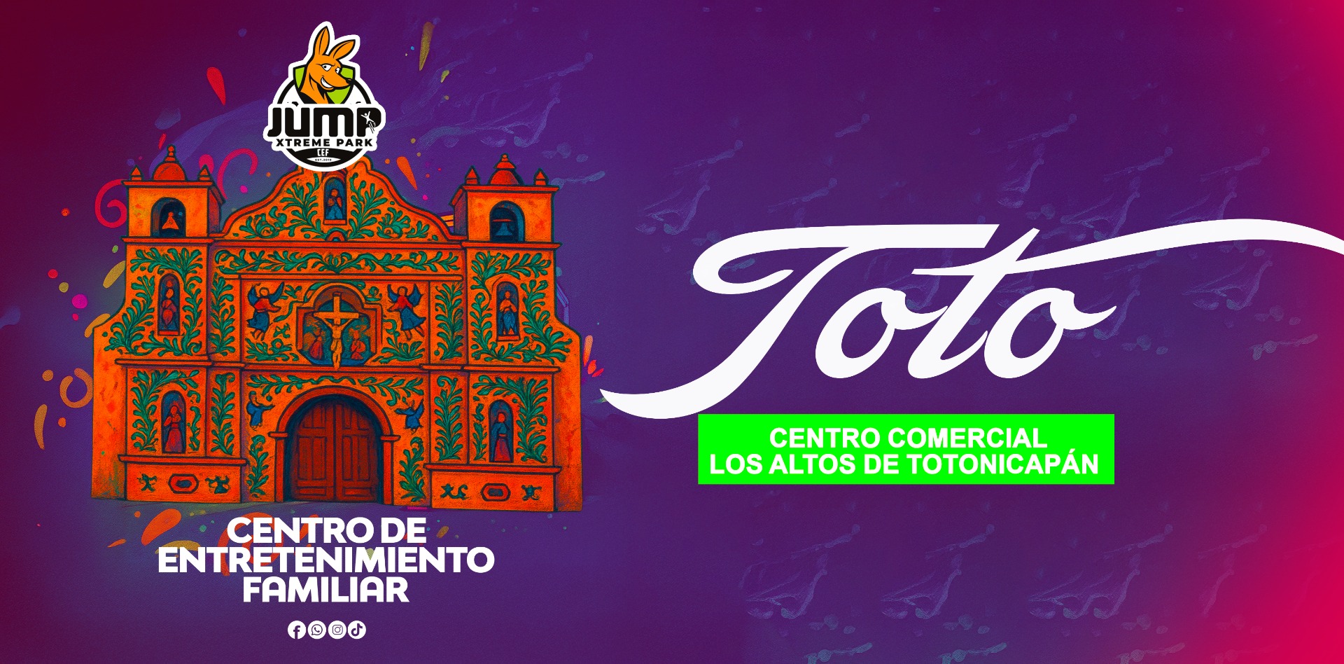 🦘 ¡La diversión aterriza en Totonicapán! En Jump Xtreme Park, dentro del Centro Comercial Los Altos, te esperan trampolines, obstáculos y risas sin fin para toda la familia. 🎉 Ven con tus amigos, familia o pareja, salta, ríe y crea recuerdos inolvidables. 📍 ¿Buscas un plan diferente? Somos tu mejor opción — ¡te esperamos para rebotar juntos al máximo! 💥